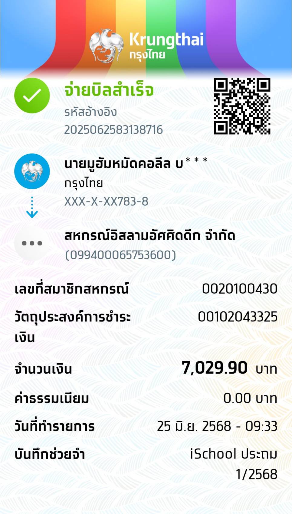 Paid BY : โอนผ่านบัญชี สหกรณ์อิสลามอัศศิดดีก จำกัด