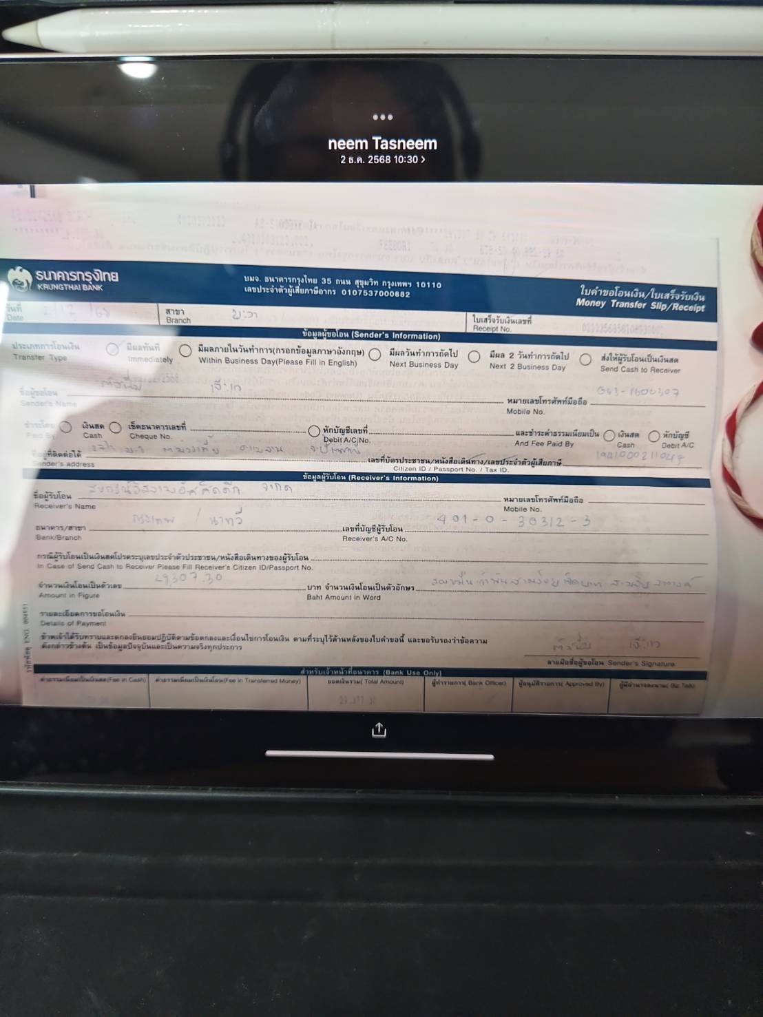Receipt Info